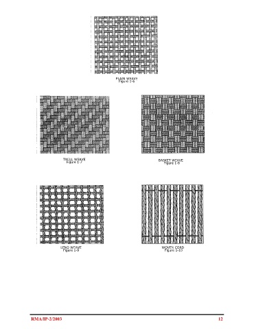 PLAIN WEAVE Figure 1-6 TWILL WEAVE BASKET WEAVE Figure 1-7 Figure 1-8 LENO WEAVE WOVEN CORD Figure 1-9 Figure 1-10 RMA/IP-2/2003 12