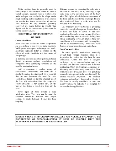 build-up and subsequent a discharge as a spark. Non-Conductive Hose