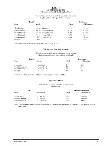 Tolerances for Specific Cut Lengths of Hose