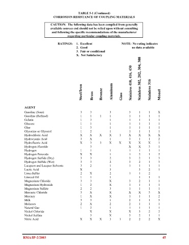 CORROSION RESISTANCE OF COUPLING MATERIALS