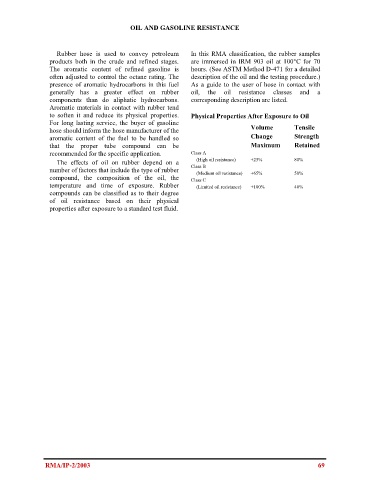 Rubber hose is used to convey petroleum In this RMA classification, the rubber samples