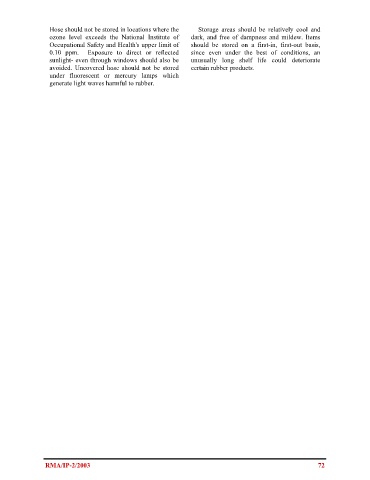 Hose should not be stored in locations where the Storage areas should be relatively cool and