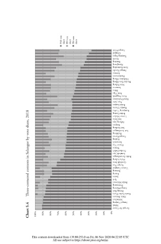 Chart 5.4 ree-cornered contests in Selangor by vote share, 2018 100% 90% 80% 70% 60% 50% 40% 30% 20% 10% 0% Ijok Jeram Sabak Kuang Kajang Teratai Kinrara Rawang Balakong Semenyih Sekinchan Permatang Sungei Tua Dusun Tua Batang Kali Seri Serdang Lembah Jaya Hulu Kelang Sungai Ramai Hulu Bernam Pandan I
