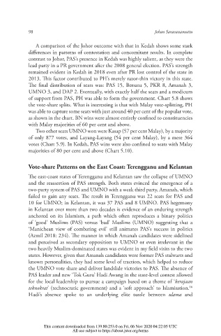 votes (Chart 5.9). In Kedah, PAS wins were also con ned to seats with Malay