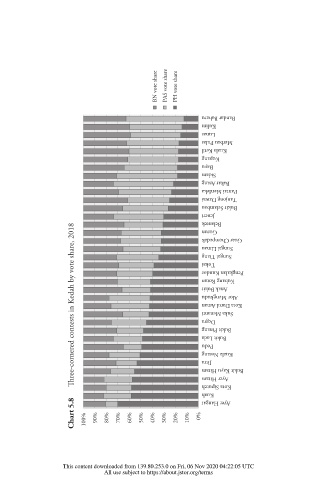 Chart 5.8 ree-cornered contests in Kedah by vote share, 2018 100% 90% 80% 70% 60% 50% 40% 30% 20% 10% 0% Jitra Pedu Kuah Tokai Degra Bukit Lada Anak Bukit Ayer Hitam Ayer Hangat Bukit Pinang Kota Siputeh Sungai Tiang Sungai Limau Kuala Nerang Suka Menanti Kubang Rotan Alor Mengkudu Kota Darul Aman Pengkalan Kundor Bu
