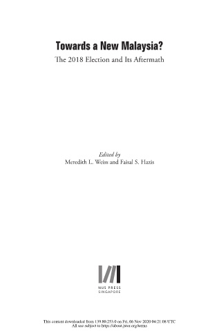 Towards a New Malaysia? e 2018 Election and Its Aftermath Edited by Meredith L. Weiss and Faisal S. Hazis This content downloaded from 139.80.253.0 on Fri, 06 Nov 2020 04:21:08 UTC All use subject to https://about.jstor.org/terms