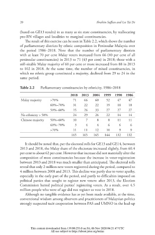 Table 2.2 Parliamentary constituencies by ethnicity, 1986–2018