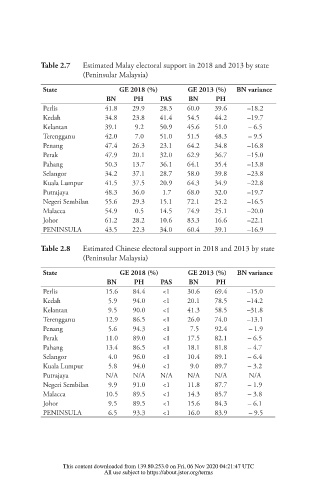 Table 2.7 Estimated Malay electoral support in 2018 and 2013 by state