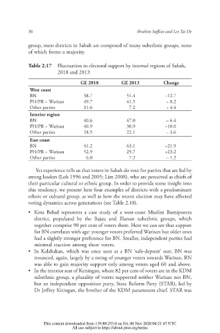Table 2.17 Fluctuation in electoral support by internal regions of Sabah,