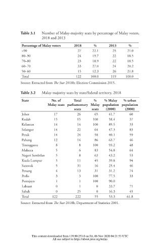 Table 3.2 Malay-majority seats by state/federal territory, 2018