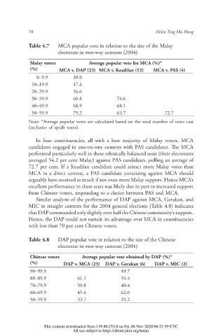 Table 4.7 MCA popular vote in relation to the size of the Malay