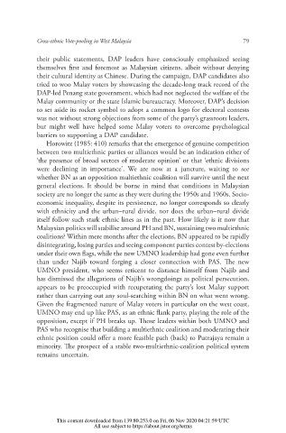 Cross-ethnic Vote-pooling in West Malaysia 79