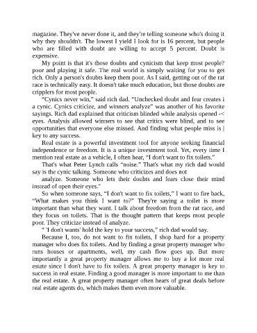 mention real estate as a vehicle, I often hear, “I don't want to fix toilets.”