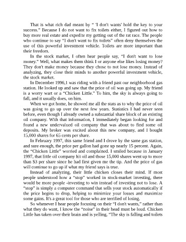 That is what rich dad meant by “ 'I don't wants' hold the key to your