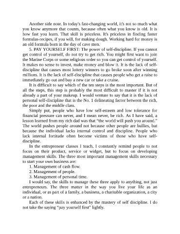 personal self-discipline that is the No. 1 delineating factor between the rich,