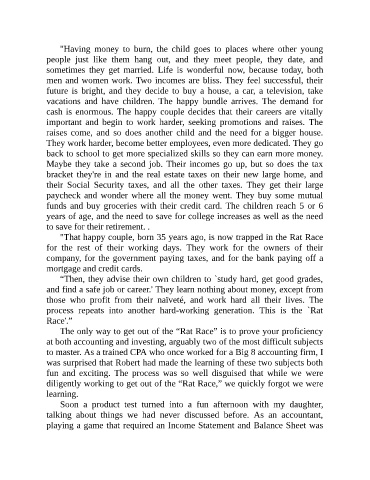 diligently working to get out of the “Rat Race,” we quickly forgot we were