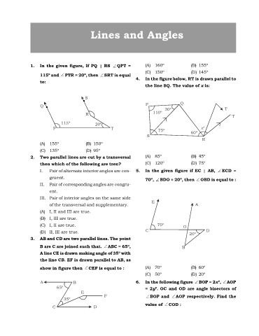 1. In the given figure, If PQ RS QPT = (A) 160º (B) 155º