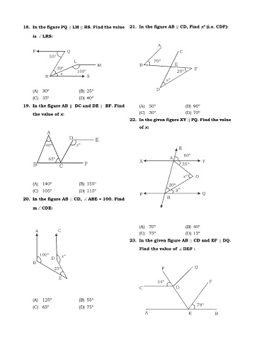 18. In the figure PQ LM RS. Find the value 21. In the figure AB CD, Find xº (i.e. CDF):