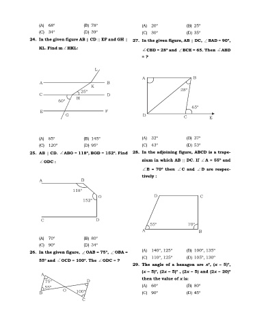 25. AB CD. ABO = 118º, BOD = 152º. Find 28. In the adjoining figure, ABCD is a trape-