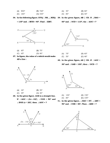 36. In the following figure. If PQ RS, MXQ 39. In the given figure, AB CD. If BAO =