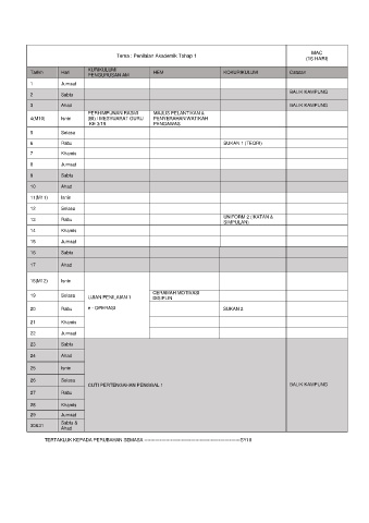 Tarikh Hari HEM KOKURIKULUM Catatan