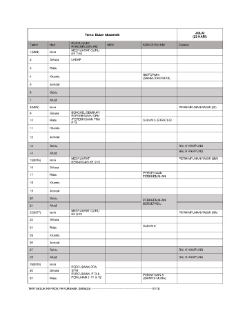 Tarikh Hari HEM KOKURIKULUM Catatan