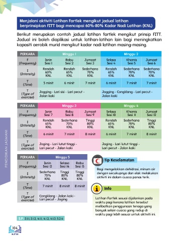 berprinsipkan FITT bagi mencapai 60%-80% Kadar Nadi Latihan (KNL)