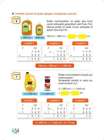 750 mℓ + 500 mℓ = 1 ℓ 250 mℓ
