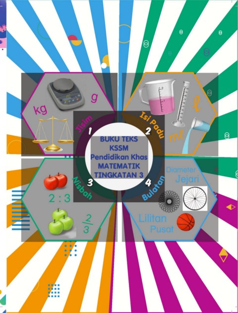 g kg ℓ Jisim Isi Padu 1 BUKU TEKS 2 mℓ KSSM Pendidikan Khas MATEMATIK Diameter TINGKATAN 3 Jejari 3 Bulatan 4 2 : 3 Nisbah 2 Lilitan 3 Pusat