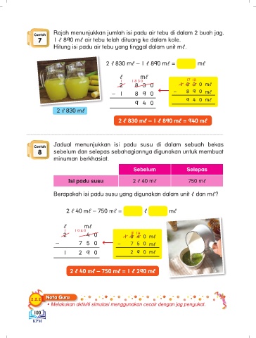 7 1 ℓ 890 mℓ air tebu telah dituang ke dalam kole.