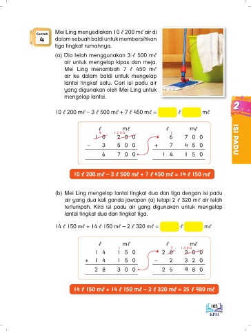 (b) Mei Ling mengelap lantai tingkat dua dan tiga dengan isi padu