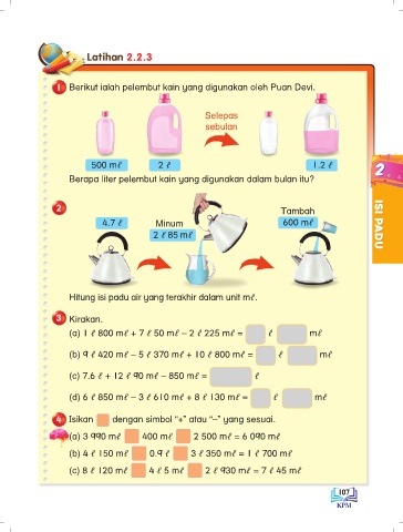 Hitung isi padu air yang terakhir dalam unit mℓ.