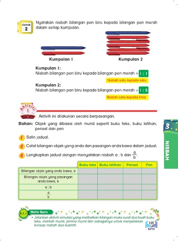 Nisbah bilangan pen biru kepada bilangan pen merah = 1 : 5