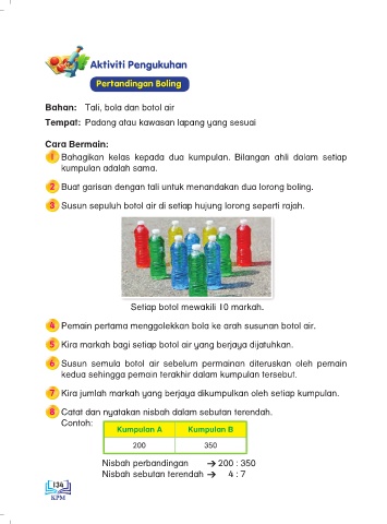 5 Kira markah bagi setiap botol air yang berjaya dijatuhkan.