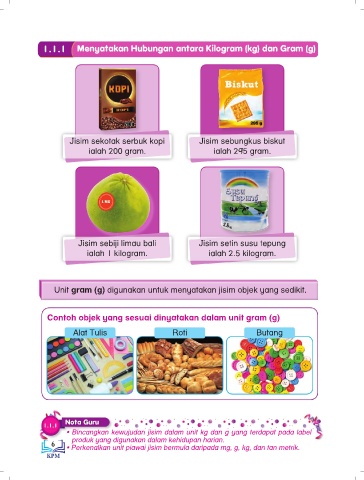 1.1.1 Menyatakan Hubungan antara Kilogram (kg) dan Gram (g)