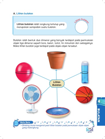 • Bimbing murid mengenal pasti lilitan bulatan pada permukaan objek-objek