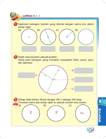 Kenal pasti bahagian yang manakah merupakan lilitan, pusat, jejari,