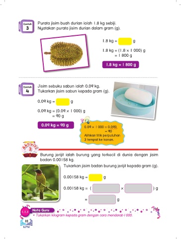 Contoh Jisim sebuku sabun ialah 0.09 kg.