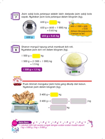 8 Nyatakan jisim doh roti dalam kilogram (kg).