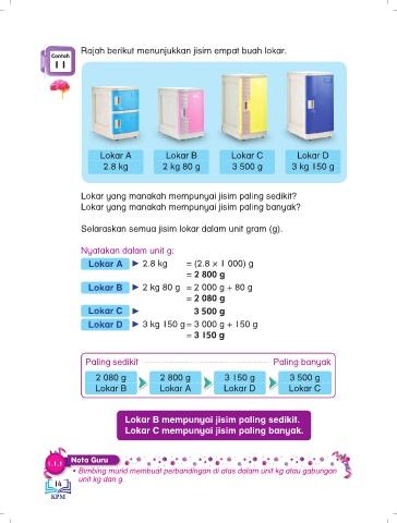 • Bimbing murid membuat perbandingan di atas dalam unit kg atau gabungan