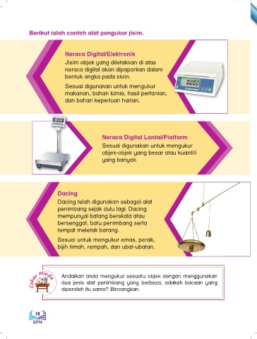 Cabar Minda dua jenis alat penimbang yang berbeza, adakah bacaan yang
