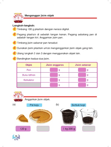 4 Gunakan jisim plastisin untuk menganggarkan jisim objek yang lain.