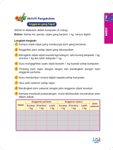 5 Timbang jisim objek dengan tangan dan bandingkan dengan hasil