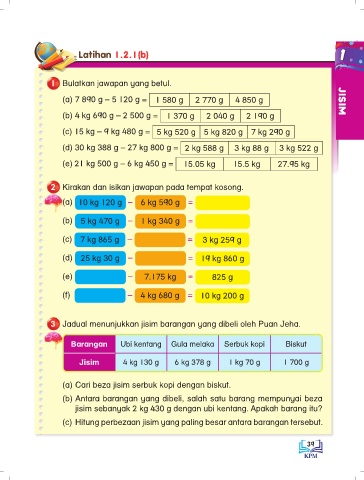Jisim 4 kg 130 g 6 kg 378 g 1 kg 70 g 1 700 g