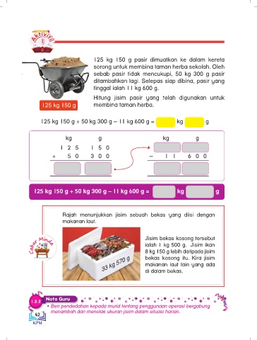 125 kg 150 g pasir dimuatkan ke dalam kereta