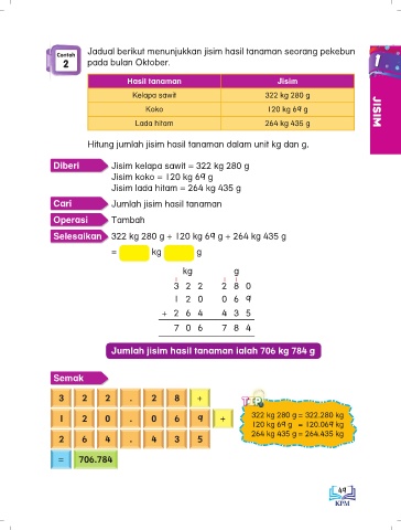 Hitung jumlah jisim hasil tanaman dalam unit kg dan g.
