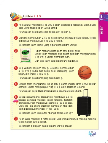 Hitung jisim asal buah epal dalam unit kg dan g. JISIM