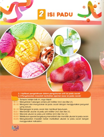 2.2.2 Menolak ukuran isi padu unit mililiter (mℓ) dan liter (ℓ).
