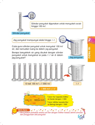 • Menyatakan perkaitan antara unit liter dengan mililiter melalui aktiviti simulasi