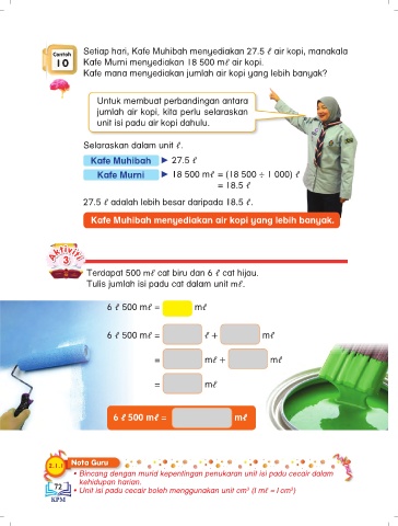 • Unit isi padu cecair boleh menggunakan unit cm (1 mℓ = 1 cm )